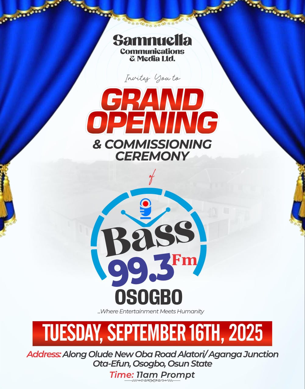 The ceremony, organised by Sammuella Communications & Media Ltd, will take place on Tuesday, September 16th, 2025, at the station’s premises located along Olude New Oba Road, Alatori/Aganga Junction, Ota-Efun, Osogbo.